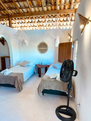 Temos opções de casas de 64m² com cozinha completa e banheiro acomodando até 4 pessoas e uma criança em um ambiente único, com vista mar a 20 metros da melhor praia de Atins.