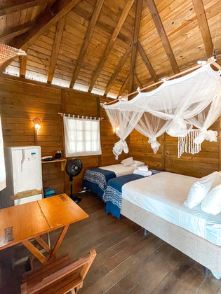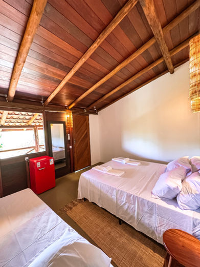 Com 24m², a Suíte Conforto oferece mais espaço e comodidade para sua estadia. Equipada com ar-condicionado split, chuveiro quente com boiler e frigobar, garante um ambiente moderno e agradável. Disponível em opções térreas ou no primeiro andar, é perfeita para quem deseja unir praticidade e bem-estar em Atins, com todo o essencial para descansar após explorar os Lençóis Maranhenses.